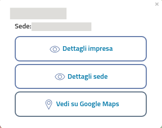 Premendo su una sede sulla mappa, appariranno le seguenti informazioni e sarà possibile andare alle pagine dedicate o visualizzare su Google Maps la sede selezionata.
